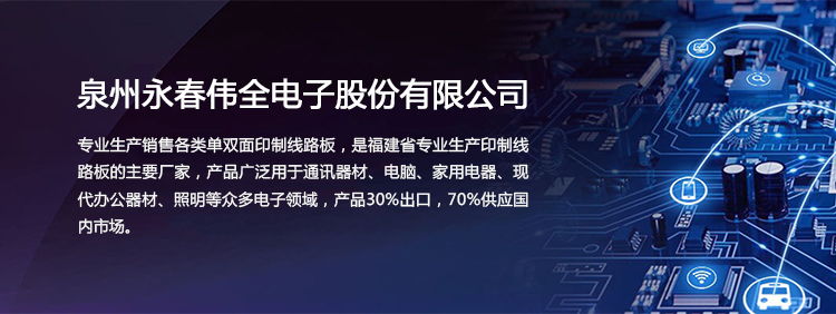 泉州永春偉全電子股份有限公司是一家合資企業。創辦于2011年,專業生產各類單面印制線路板,是福建省專業生產印制線路板的主要廠家,公司坐落在泉州市永春縣桃城鎮留安開發區添福工業園,占地面積達10多畝,交通方便。公司現有員工80多人,總投資3000多萬元人民幣,年生產能力逾20萬平方米。